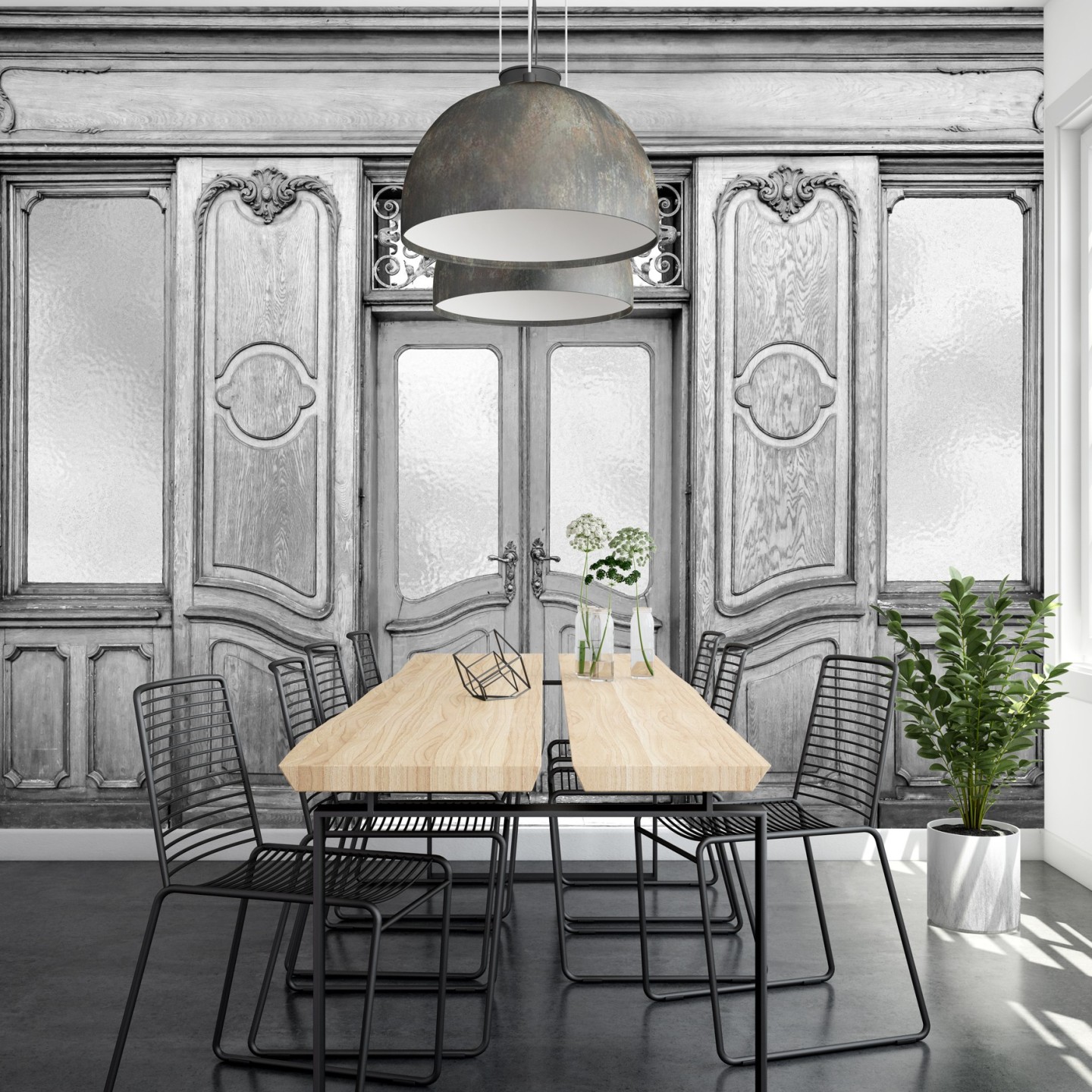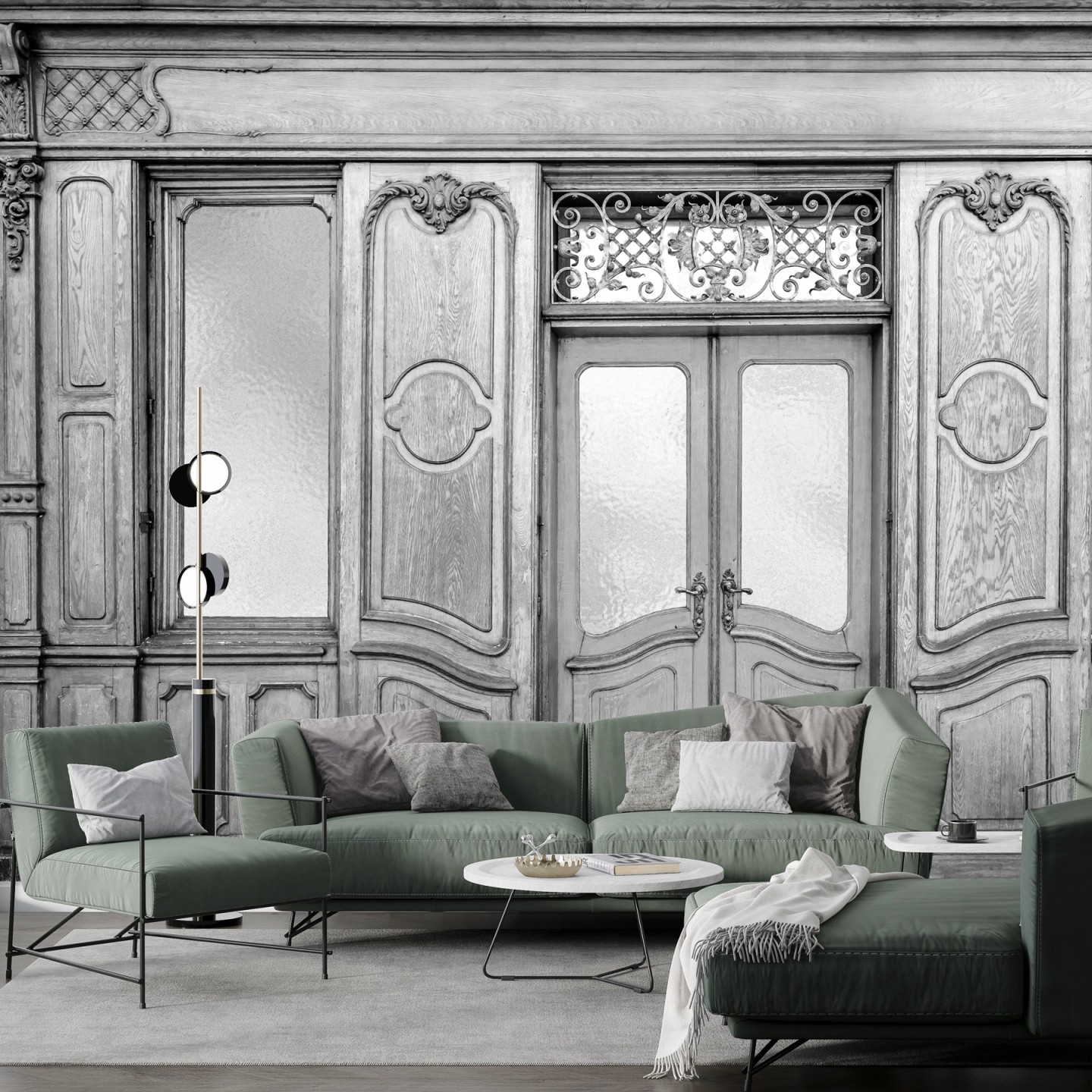 Ce papier peint panoramique trompe-l’œil offre une profondeur saisissante et transforme le mur en véritable décor architectural, conférant à l’espace une présence noble et enveloppante. Il s’intègre naturellement dans un intérieur contemporain, classique ou éclectique, et sublime aussi bien un salon, une entrée, une bibliothèque, un commerce de caractère ou un projet hôtelier. L’impression haute définition magnifie chaque détail, des reliefs sculptés aux nuances subtiles du bois, pour un rendu à la fois authentique et sophistiqué.